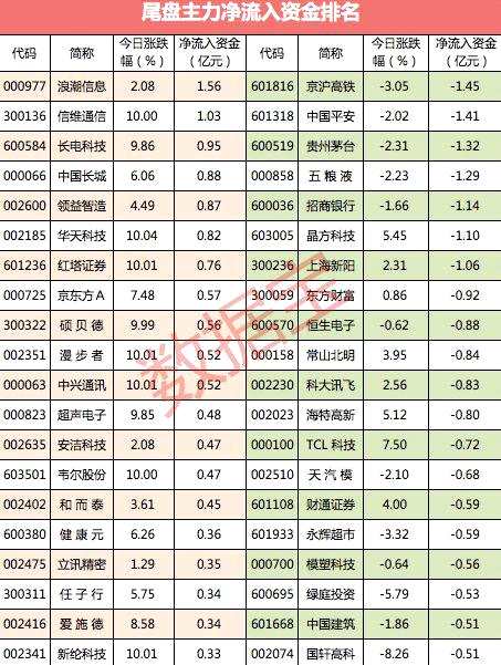 尾盤主力資金凈流出33.78億元,其中,中小板流出5.68億元,創(chuàng)業(yè)板流出7.70億元。
