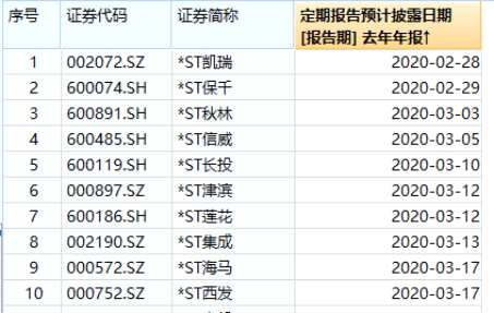 今年*ST公司中擬披露年報日期排名前十一覽表