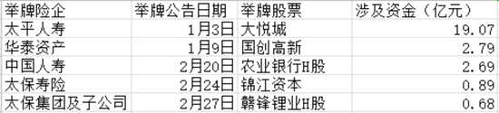 2月28日,中國太保集團攜旗下4家子公司在中國保險行業(yè)協(xié)會發(fā)布公告稱,其舉牌贛鋒鋰業(yè)H股。事實上,這已經(jīng)是今年開年以來險資第5次舉牌上市公司?!敖鹑?號院”統(tǒng)計,今年險資舉牌上市公司所涉及的資金量已經(jīng)超過26億元。