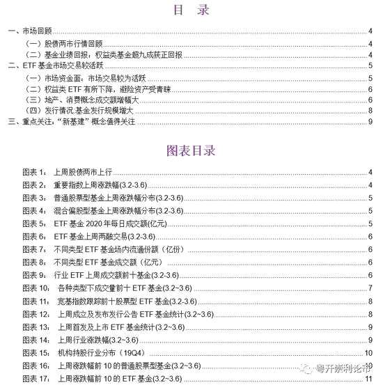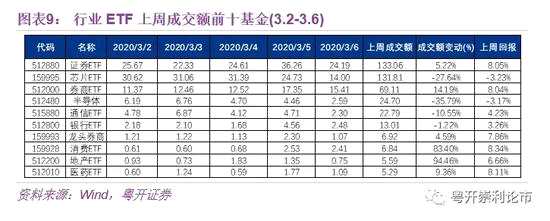 上周(3.2~3.6)表現(xiàn)較好的基金集中在醫(yī)療、農(nóng)林牧漁、消費等相關(guān)概念,普通股票型基金中漲跌幅前十的基金中醫(yī)療主題基金有5只,農(nóng)林牧漁行業(yè)ETF基建有2只,其中嘉實農(nóng)業(yè)產(chǎn)業(yè)基金漲幅11.01%居首。ETF基金漲幅前十基金主要包括跟蹤大盤、京津冀、醫(yī)藥、消費、券商等概念ETF。我們認(rèn)為短期市場受事件性因素影響出現(xiàn)震蕩,但A股現(xiàn)階段仍具有投資價值,“新基建”概念需求廣闊且受政策支持,在此背景下,大科技板塊中長期確定性強。