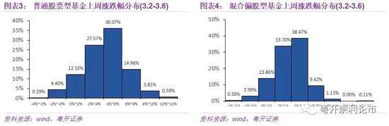 (二)基金業(yè)績回報:權(quán)益類基金超九成獲正回報。普通股票型基金和混合偏股型基金超95%獲得了正向回報,上周(3.2-3.6)業(yè)績集中分布2%~6%區(qū)間,其中,普通股票型基金中占比95.31%的基金業(yè)績?yōu)檎?,混合偏股型基金中占?6.67%的基金業(yè)績?yōu)檎?/p>