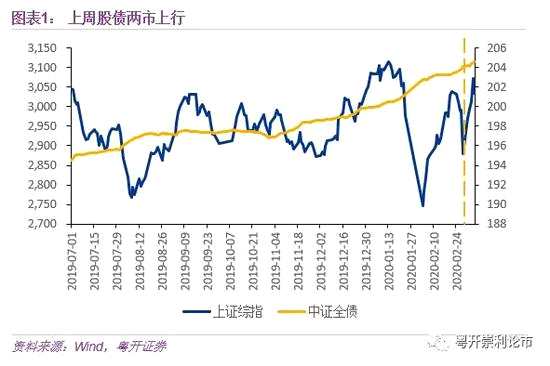 上周(3.2-3.6)股市整體上行,債市平穩(wěn)上升。受海外市場影響A股有所波動,但依舊具有韌性,上周滬指累積上升5.35%、深成指累積上升5.48%、創(chuàng)業(yè)板指累積上升5.86%。債市表現(xiàn)依舊平穩(wěn)上升,市場流動性寬松的預(yù)期下,上周中證全債指數(shù)累積上漲0.25%。