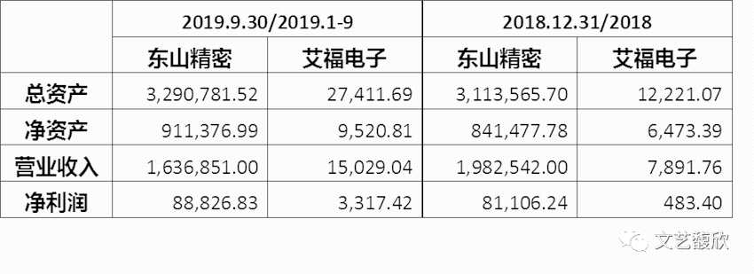 最近一年一期東山精密和艾福電子主要財(cái)務(wù)數(shù)據(jù)如下表所示: