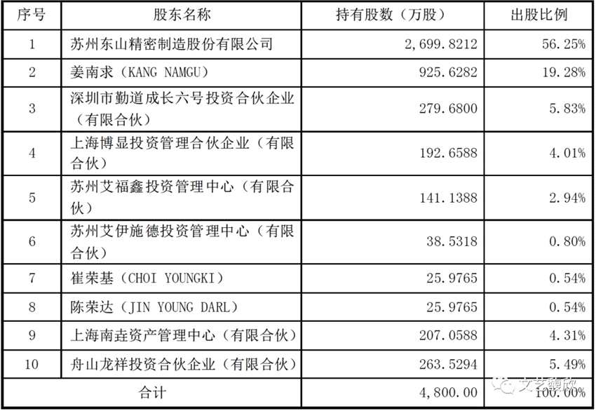 其中,姜南求、崔榮基、陳榮達(dá)為艾福電子的管理層。而在分拆上市前,艾福電子的股權(quán)結(jié)構(gòu)已變更為: