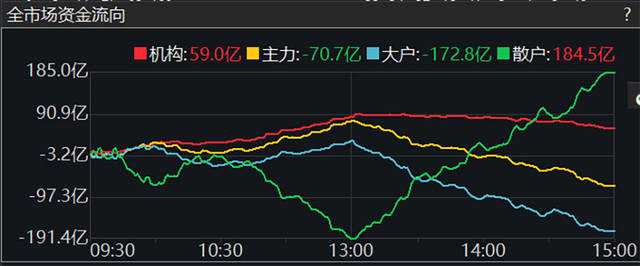 從資金流向上看,散戶成為當(dāng)日的入場進(jìn)攻主力,尤其是下午伴隨著股指乏力下挫,散戶資金卻在持續(xù)流入。Wind顯示,3月18日機(jī)構(gòu)資金共買入59.0億元,散戶買入184.5億元,主力資金和大戶則分別賣出70.7億元和172.8億元。