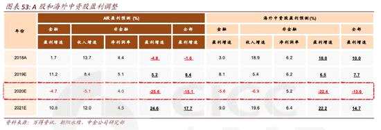 我們最新的自上而下盈利預(yù)測(cè)為2020年A股增長(zhǎng)-15.1%(非金融-25.6%),海外中資股增長(zhǎng)-13.6%(非金融-22.4%)。目前市場(chǎng)一致預(yù)期顯示2020年A股滬深300指數(shù)盈利增長(zhǎng)8%,MSCI China指數(shù)盈利增長(zhǎng)7%,未來(lái)可能有繼續(xù)下調(diào)的空間。