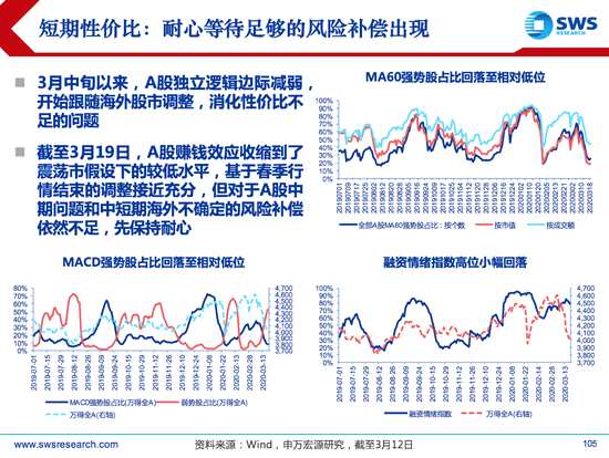 報告顯示,股市增量博弈,自下而上盈利預(yù)測尚未反映新冠肺炎疫情影響。后兩者都非長邏輯,后續(xù)邊際弱化是大概率。