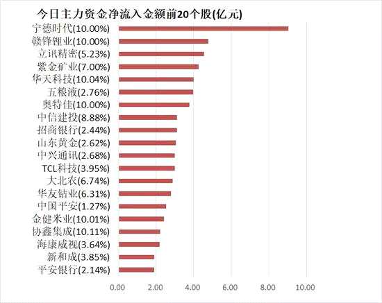 5、寧德時(shí)代主力資金凈流入9.05億元居首