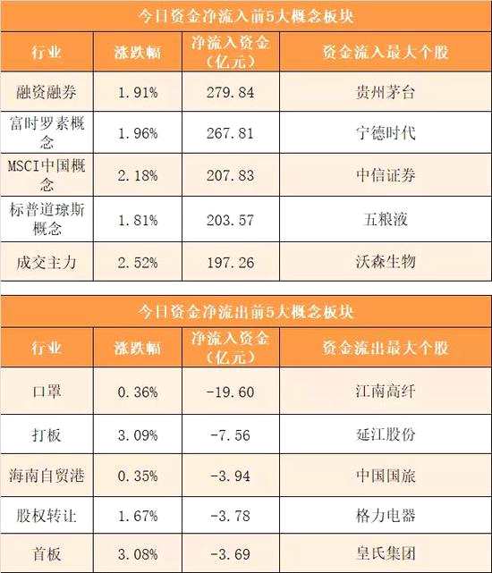 概念板塊方面,今日融資融券、富時(shí)羅素概念、MSCI中國(guó)概念、標(biāo)普道瓊斯等概念板塊資金呈現(xiàn)凈流入,其中融資融券概念凈流入279.84億元居首。