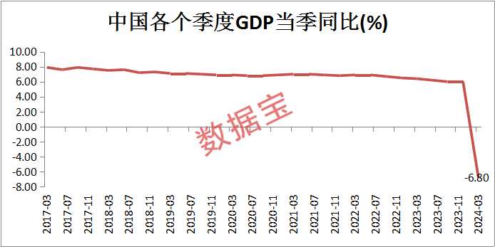 中國一季度GDP同比下降6.8%