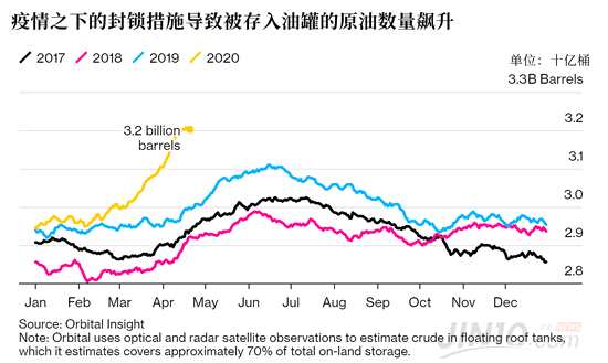 專家表示,每周有5000萬桶原油被送入庫存,可能再過幾周就沒有儲存原油的空間了,業(yè)內人士稱這是“油罐頂”(“tank tops”),帶來的結果將是世界許多地方的油價接近零,在某些情況下可能會變?yōu)樨摂?shù)。