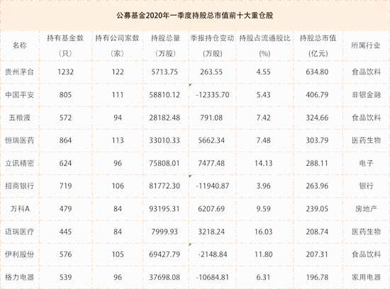 公募基金一季報(bào)披露正式收官,最受基金青睞的重倉股也隨之揭曉。