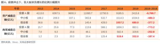 問題一:商譽(yù)減值/資產(chǎn)減值對2019年盈利影響有多大?2019年,創(chuàng)業(yè)板資產(chǎn)減值和商譽(yù)減值的規(guī)模分別為680億和332億,但板塊利潤也僅有500億左右,減值沖擊仍然不小。但相比2018年的1057億元和519億元,邊際上有所改善。
