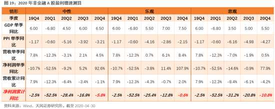 往前看,中性假設(shè)下,我們預(yù)計(jì)非金融A股2020年凈利潤增速大概在-6%左右,增速逐季抬升,Q2、Q3、Q4累計(jì)增速分別為-28.4%、-16.9%、-5.8%。