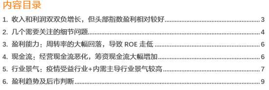 1. 收入和利潤雙雙負(fù)增長,但頭部指數(shù)盈利相對較好