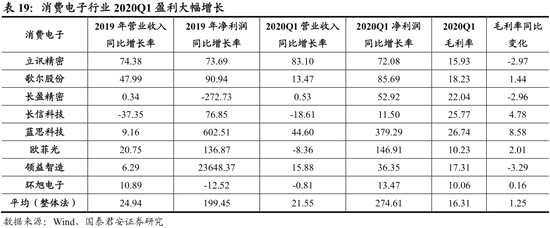 消費電子行業(yè)2020Q1盈利大幅增長,海外疫情使行業(yè)Q2盈利不確定性較高,但5G換機潮和可穿戴設備發(fā)展將使行業(yè)景氣恢復。我們選取的8家消費電子公司2020Q1營收同比增長22%,扣非凈利潤同比增長275%。盡管受疫情影響,我國3月手機產(chǎn)量僅同比下降0.7%,顯示消費電子行業(yè)處于景氣復蘇過程。無線藍牙耳機等產(chǎn)品銷量的大幅增長也促進了行業(yè)景氣提高。由于Q1海外疫情沖擊較小,且消費電子行業(yè)外需占比高,行業(yè)Q1盈利增速較高。但海外疫情蔓延使Q2盈利不確定性較高。但5G換機潮及可穿戴設備的發(fā)展將使疫情后消費電子行業(yè)景氣度恢復。