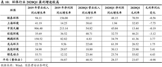 環(huán)保行業(yè)2020Q1盈利快速增長,政策支持與融資改善下高景氣有望持續(xù)。我們選取的8家環(huán)保公司2020Q1營收同比增長41%,扣非凈利潤同比增長28%。環(huán)保行業(yè)受疫情沖擊較小,醫(yī)療廢物處理甚至增加了部分需求。固廢行業(yè)的上海環(huán)境、【旺能環(huán)境(002034)、股吧】,水處理行業(yè)的聯(lián)泰環(huán)保、鵬鷂環(huán)保等均快速增長。隨著固廢法大修,企業(yè)融資成本下降,環(huán)保行業(yè)高景氣仍可持續(xù)。