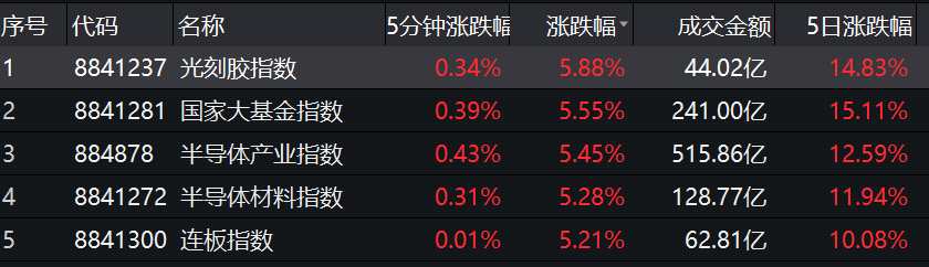 A股方面,在Wind概念板塊中,光刻膠、國家大基金、半導(dǎo)體材料等板塊指數(shù)漲幅居前。