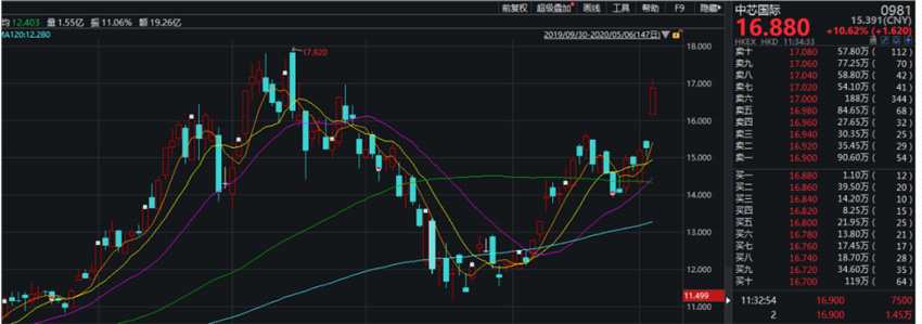 港股中芯國際今日上午大漲,股價(jià)創(chuàng)出階段新高。
