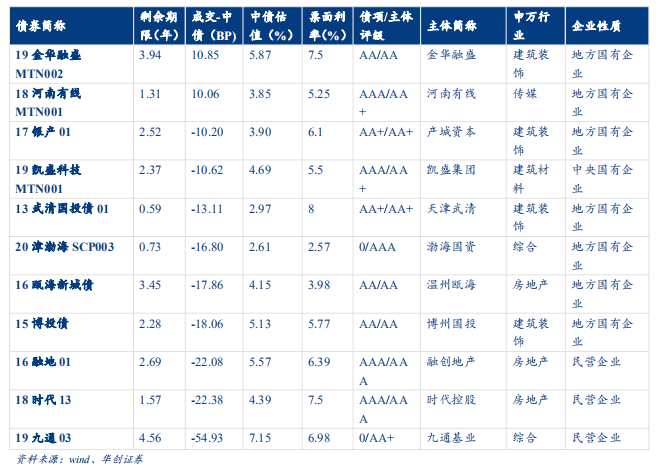 信用方面,中短票中長(zhǎng)期收益率下行0-2BP, 中長(zhǎng)期期信用利差走闊3-4BP。城投債中短期收益率下行0-1BP,長(zhǎng)期收益率上行1BP,信用利差走闊3-4BP。信用債成交活躍度與上一交易日有所上升,中國(guó)石油集團(tuán)的20中石油MTN005、中國(guó)民生銀行的18民生銀行01、北京銀行的20北京銀行小微債01等個(gè)券出現(xiàn)多次成交;從行業(yè)分布來(lái)看,異常成交集中在建筑裝飾、綜合、房地產(chǎn)等行業(yè),個(gè)券低估值數(shù)量高于高估值數(shù)量,剩余期限在半年以上、成交價(jià)偏離估值80BP以上的個(gè)券有19云城投MTN001,高于估值87BP;此外,19九通03低于估值55BP。