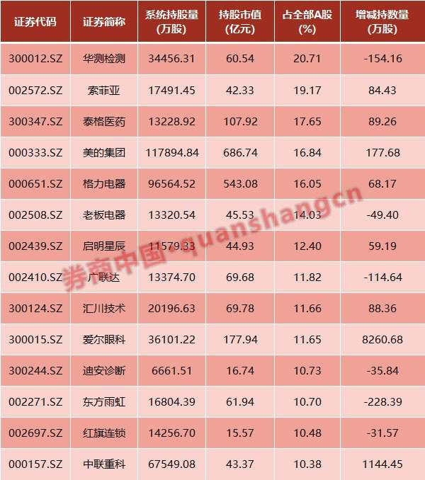與此同時,除上述4只預(yù)警個股外,還有10只個股深股通持股比例超過10%。其中,最高的是格力電器,占比達(dá)16.05%,且5月27日當(dāng)天有68萬股增持。此外,愛爾眼科和中聯(lián)重科雖然目前持股比例并不太高,分別為11.65%和10.38%,但5月27日獲得了大額買入,增持?jǐn)?shù)量分別為8260.68萬股和1144.45萬股。