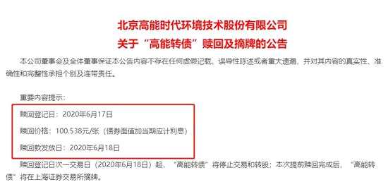 高能轉(zhuǎn)債最新(5月29日)的收盤價(jià)為119.47元,轉(zhuǎn)股價(jià)值為119.61元。如果沒在6月17日(含)賣出或轉(zhuǎn)股,到時(shí)也將被按100.538元強(qiáng)制贖回。