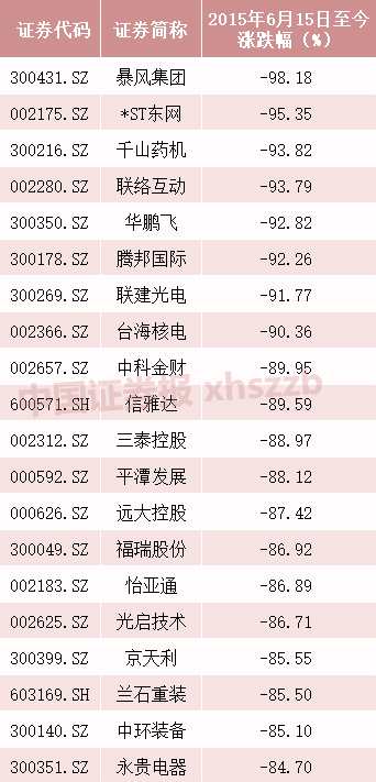 上輪牛市10倍牛股至今跌幅前20個(gè)股