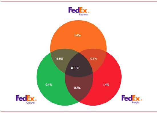 圖表: 2019年FedEx 96.8%的收入來(lái)自于使用兩種產(chǎn)品以上的客戶
