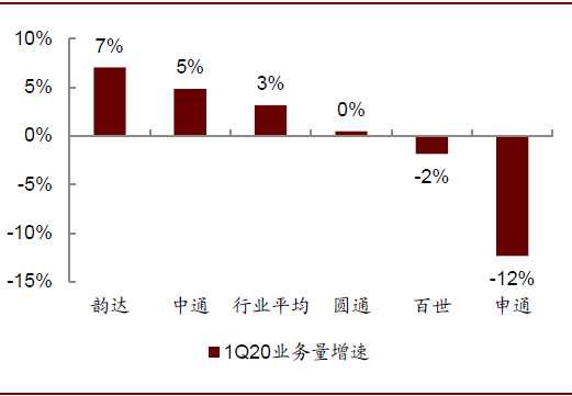 圖表: 1Q20業(yè)務(wù)量增速分化