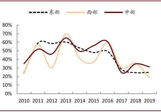 我們認(rèn)為,電商模式創(chuàng)新的成功背后在于網(wǎng)購(gòu)滲透率的地區(qū)分布仍不均衡:從快遞的區(qū)域分布來(lái)看,2019年?yáng)|部地區(qū)集中了80%的業(yè)務(wù)量。中部和西部分別僅占13%和7%。事實(shí)上前5大省份(廣東、浙江、江蘇、上海、北京)集中了66%的攬收量和48%的派送量,地區(qū)分布仍非常不均衡,中西部地區(qū)還有廣大的發(fā)展?jié)摿Α?/p>