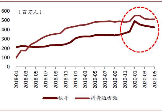 圖表: 抖音、快手月活數(shù):較疫情期間有所下降,同比仍大幅增長(zhǎng)