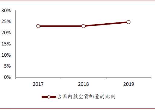 圖表: 順豐航空占國(guó)內(nèi)航空貨郵量的比例