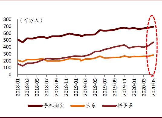 圖表: 電商平臺(tái)促銷力度較大:4、5月份月活數(shù)量增長(zhǎng)