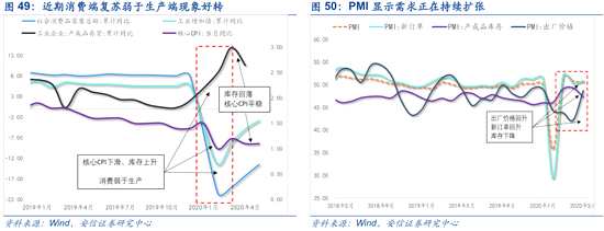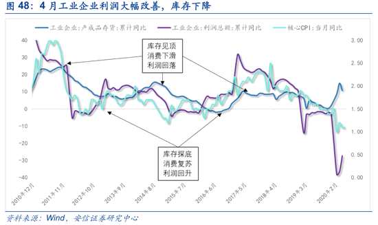 經(jīng)濟(jì)環(huán)境:目前,消費(fèi)弱于生產(chǎn)的狀況正在好轉(zhuǎn),經(jīng)濟(jì)總量數(shù)據(jù)正在從供給端向需求端過(guò)渡,信心正在逐漸恢復(fù)。低估值板塊受壓制主要的一個(gè)原因在于這一階段GDP反映的主要是供給端的變化,也就是GDP提升更多的是代表總供給的上升,而市場(chǎng)更關(guān)注需求端。在消費(fèi)的修復(fù)還是弱于生產(chǎn)的情況下,庫(kù)存數(shù)據(jù)的上升會(huì)使得市場(chǎng)擔(dān)憂(yōu)經(jīng)濟(jì)修復(fù)不具備持續(xù)性,即便后續(xù)修復(fù)也將有可能是W型。因此,對(duì)于與經(jīng)濟(jì)相關(guān)的低估值板塊依然受到壓制。但目前,消費(fèi)弱于生產(chǎn)的狀況正在好轉(zhuǎn),經(jīng)濟(jì)總量數(shù)據(jù)正在從供給端向需求端過(guò)渡,信心正在逐漸恢復(fù)。具體而言,在一季度社零總額的增長(zhǎng)落后于工業(yè)增長(zhǎng),導(dǎo)致產(chǎn)成品庫(kù)存增速持續(xù)增長(zhǎng),這意味著生產(chǎn)端的復(fù)蘇無(wú)法有效傳導(dǎo)至消費(fèi)端。但是進(jìn)入2020年第二季度后,隨著復(fù)工復(fù)產(chǎn)的穩(wěn)步推進(jìn),消費(fèi)弱于生產(chǎn)的現(xiàn)象已經(jīng)出現(xiàn)好轉(zhuǎn)。而從近期數(shù)據(jù)看,4月工業(yè)企業(yè)利潤(rùn)數(shù)據(jù)大幅超預(yù)期好轉(zhuǎn),工業(yè)企業(yè)庫(kù)存開(kāi)始回落,1-4月產(chǎn)成品存貨同比增長(zhǎng)10.6%,較3月大幅下滑4.3pcts,庫(kù)存數(shù)據(jù)有望二次探底。同時(shí),5月公布的核心CPI趨穩(wěn),PMI也顯示需求正在擴(kuò)張,消費(fèi)端持續(xù)改善。