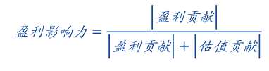 為了增強(qiáng)不同期的盈利貢獻(xiàn)和估值貢獻(xiàn)的可比性,我們采用下列公式計(jì)算出盈利貢獻(xiàn)對(duì)于漲跌幅的影響力,該值越大則盈利能力對(duì)其漲跌的解釋度就越高。