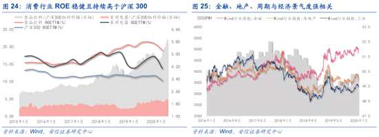 ■當(dāng)前估值分化會(huì)有轉(zhuǎn)機(jī)么?回答這個(gè)問(wèn)題之前,需要解釋一個(gè)問(wèn)題,就是在一季度我國(guó)宏觀經(jīng)濟(jì)受疫情嚴(yán)重影響后,未來(lái)經(jīng)濟(jì)持續(xù)改善是大概率事件的預(yù)期下,為何當(dāng)前市場(chǎng)仍然低估與經(jīng)濟(jì)強(qiáng)相關(guān)的金融、地產(chǎn)、周期這些板塊?低估值板塊受壓制主要的一個(gè)原因在于這一階段GDP反映的主要是供給端的變化,也就是GDP提升更多的是代表總供給的上升,而市場(chǎng)更關(guān)注需求端。在消費(fèi)的修復(fù)還是弱于生產(chǎn)的情況下,庫(kù)存數(shù)據(jù)的上升會(huì)使得市場(chǎng)擔(dān)憂(yōu)經(jīng)濟(jì)修復(fù)不具備持續(xù)性,即便后續(xù)修復(fù)也將有可能是W型。因此,對(duì)于與經(jīng)濟(jì)相關(guān)的低估值板塊依然受到壓制。但可以看到的是,目前消費(fèi)弱于生產(chǎn)的狀況正在好轉(zhuǎn),經(jīng)濟(jì)總量數(shù)據(jù)正在從供給端向需求端過(guò)渡,信心正在逐漸恢復(fù)。同時(shí),利率環(huán)境在寬信用和穩(wěn)貨幣的變化下,我們認(rèn)為之后會(huì)是一個(gè)溫和波動(dòng)的過(guò)程。在這樣的形勢(shì)下,市場(chǎng)環(huán)境會(huì)逐漸從估值主導(dǎo)轉(zhuǎn)向盈利主導(dǎo)。此時(shí),估值分化迎來(lái)轉(zhuǎn)機(jī),可以關(guān)注直接受益于經(jīng)濟(jì)復(fù)蘇的行業(yè),也就是低估值板塊,例如金融、地產(chǎn)、周期等。