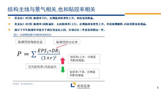 預計貼現(xiàn)率(無風險利率與風險溢價)趨勢邊際改善,市場核心焦點將會比二季度看得稍遠一些。