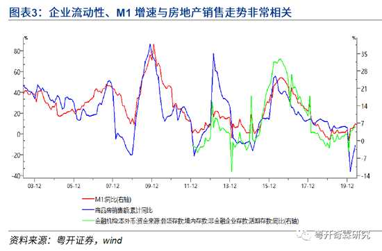 在居民諸多消費中,購房又是最主要和最大筆的消費支出,因此一般情況下,企業(yè)活期存款和M1增速的變化和房地產(chǎn)銷售走勢非常接近。