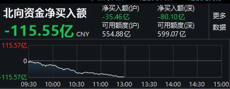 北向資金大舉流出。Wind數(shù)據(jù)顯示,截至中午收盤,北向資金凈流出115.55億元。