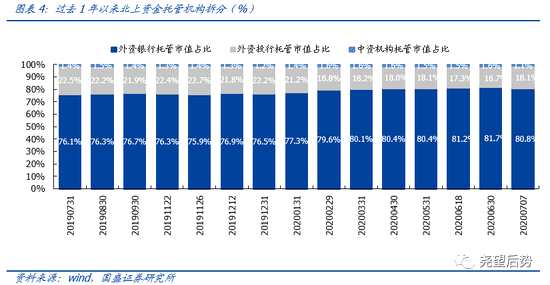 根據(jù)我們關(guān)于北上重倉(cāng)股托管機(jī)構(gòu)的統(tǒng)計(jì),發(fā)現(xiàn)7月以來(lái)北上資金結(jié)構(gòu)中,“假外資”占比出現(xiàn)了明顯提升:其中,與交易型資金掛鉤的外投行托管市值占比從6月底的16.7%提升至18.1%,而更多代表配置型資金的外銀行托管市值占比則從81.7%降至80.8%。由此可以推斷,近期主導(dǎo)外資大進(jìn)大出的主力更多是交易性資金,且不排除部分內(nèi)資借道北上。類似的情形還發(fā)生在2019年2-3月(詳細(xì)內(nèi)容參見(jiàn)《大進(jìn)大出的秘密:外資也有交易盤》20190618),而這也能在一定程度上解釋近期北上資金配置行為的變化。