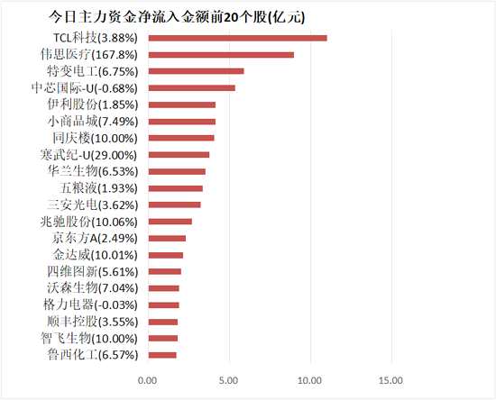 5、TCL科技主力資金凈流入11.01億元居首