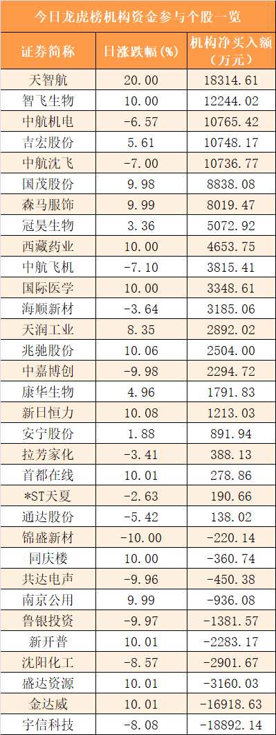 盤(pán)后龍虎榜數(shù)據(jù)顯示,機(jī)構(gòu)現(xiàn)身32股,其中天智航等22股呈現(xiàn)機(jī)構(gòu)資金凈買(mǎi)入,宇信科技等10股呈現(xiàn)機(jī)構(gòu)資金凈賣出。