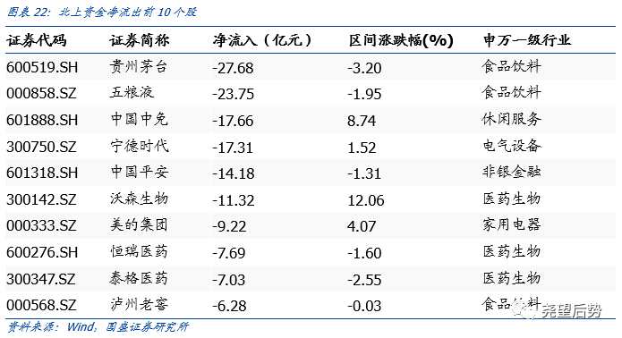 二、北上大幅流出,重倉行業(yè)再遭拋售