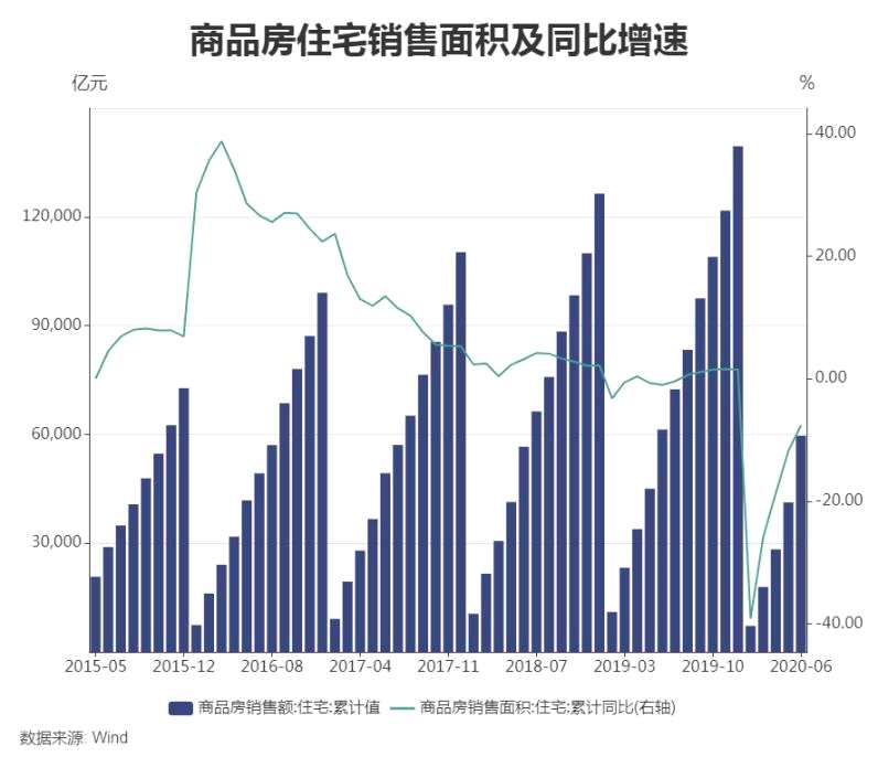 2020年1-6月,全國(guó)商品房住宅銷售面積61119萬(wàn)平方米,同比下滑7.6%,降幅比1-5月份收窄4.2個(gè)百分點(diǎn),較1-4月收窄11.1個(gè)百分點(diǎn)。