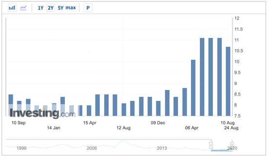 在連續(xù)三個(gè)月維持11.1%的增速后,7月M2增速略降至10.7%,這也是自今年2月連續(xù)上漲以來首次出現(xiàn)下降。