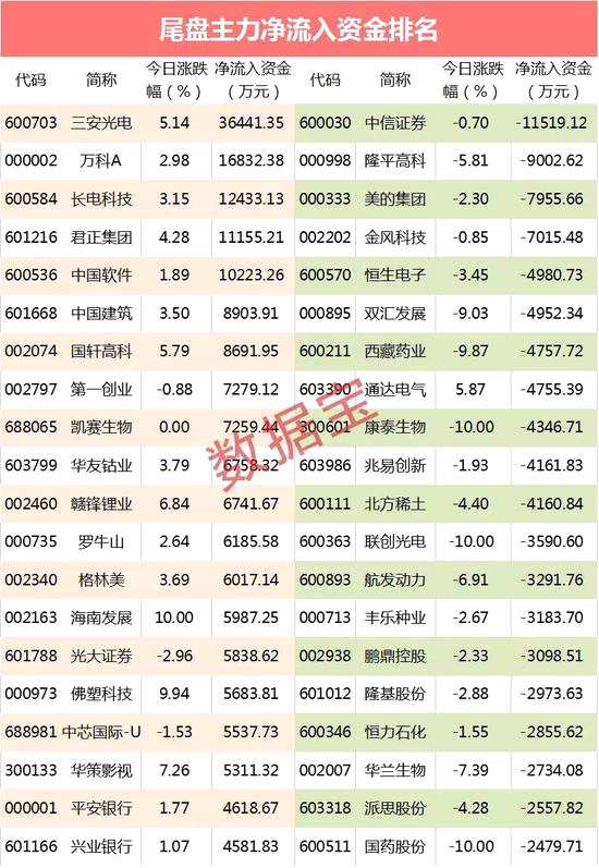 兩市主力資金全天凈流出729億元。華為承認(rèn)成立顯示驅(qū)動(dòng)產(chǎn)品業(yè)務(wù)部,三安光電尾盤流入資金3.64億元。
