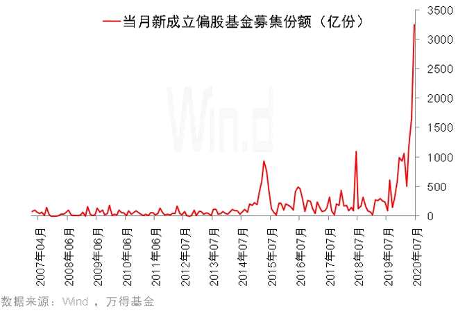 Wind數(shù)據(jù)顯示,7月股票型基金和混合型基金新成立84只,合計募集份額3250.2億份,創(chuàng)歷史新高,比歷史次高多出近一倍。也就意味著有3000多億元等待入市,未來三個月為這些基金重要建倉期。