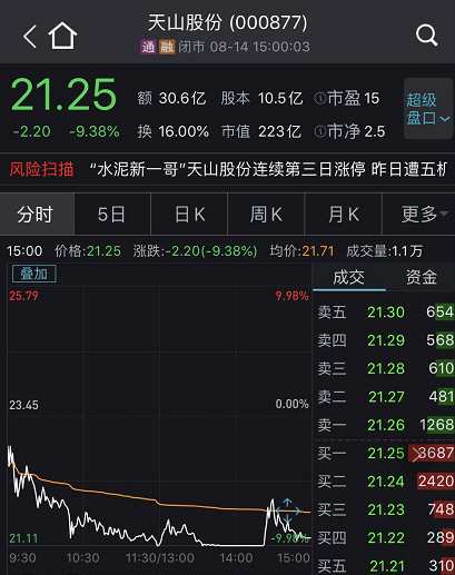 不過(guò),此前三連板的天山股份,在昨日開(kāi)板后,今天繼續(xù)暴跌,盤中一度被砸跌停。主力資金凈流出近5億元。最終收跌9.38%。