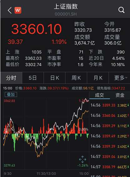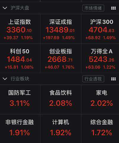 滬指上午收跌,午后金融、白酒、地產(chǎn)股輪番走強(qiáng),帶動(dòng)指數(shù)上行。截止收盤,滬指漲1.19%報(bào)3360.1點(diǎn),本周累計(jì)上漲0.18%: