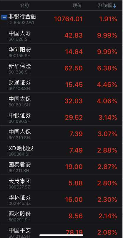 其中,保險(xiǎn)股尾盤放量拉漲。非銀金融機(jī)構(gòu)收漲1.91%。